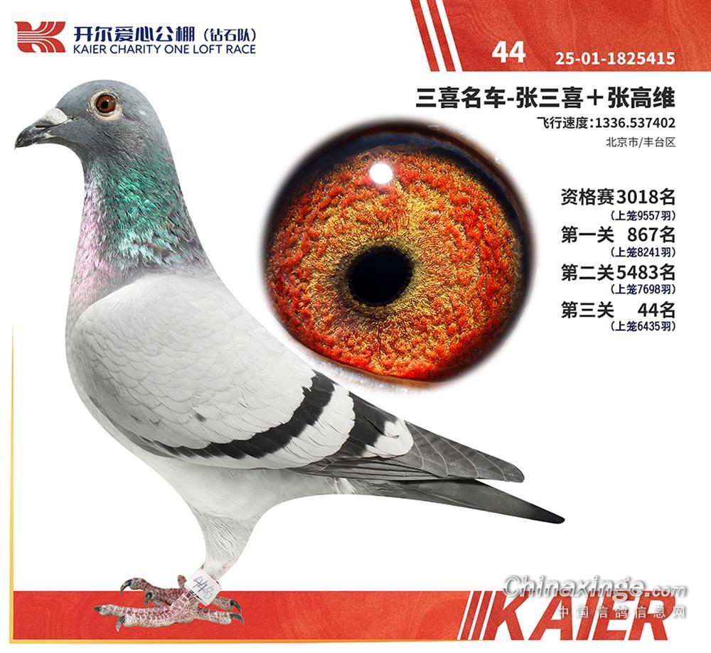 这羽金母729在2025年首次投入使用,便交出了亮眼答卷。其中包括开尔大秋棚的44名羽528名,同窝一雌一雄。父亲为福星号,引进自东一个名家的詹森血系。母亲就是金母729,它的子代还在神州公棚飞出了67名、145名、119名的成绩。张三喜表示,当初引进这羽鸽子时花费不算多,但如今它的身价已经大幅上涨,能引进它确实非常荣幸。
