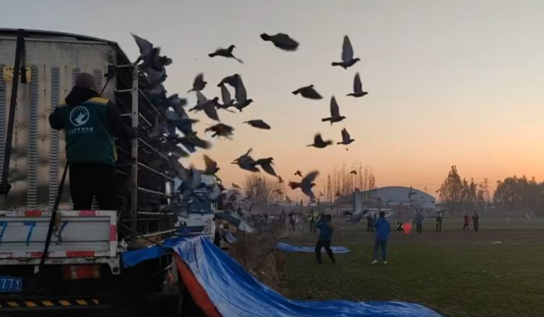 2.时间要足:每天早晚各飞一次,加起来要两小时以上。下午气温降下来后,傍晚交给好教练去调教。这样练出来的鸽子,体质和胆量都没得说。