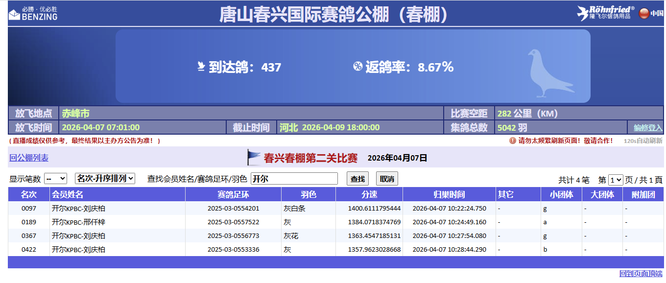 春兴第二关,开尔盖比闪电家族领衔出战,斩获97、189、367、422名。