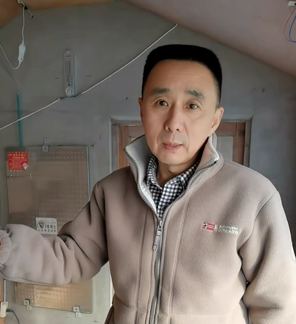 我的鸽棚有点简陋,因为建的时间比较早,一直延续在用。墙上挂着的是我弄的加热板,我一共弄了三块加热板,并配了温度计,冬天特别冷的时候我会根据温度来决定是开一块还是两块,始终保持鸽舍里面的温度不低于零下六七度,因为咱们沈阳这边冬天最冷的时候零下二三十度,鸽子受不了。
