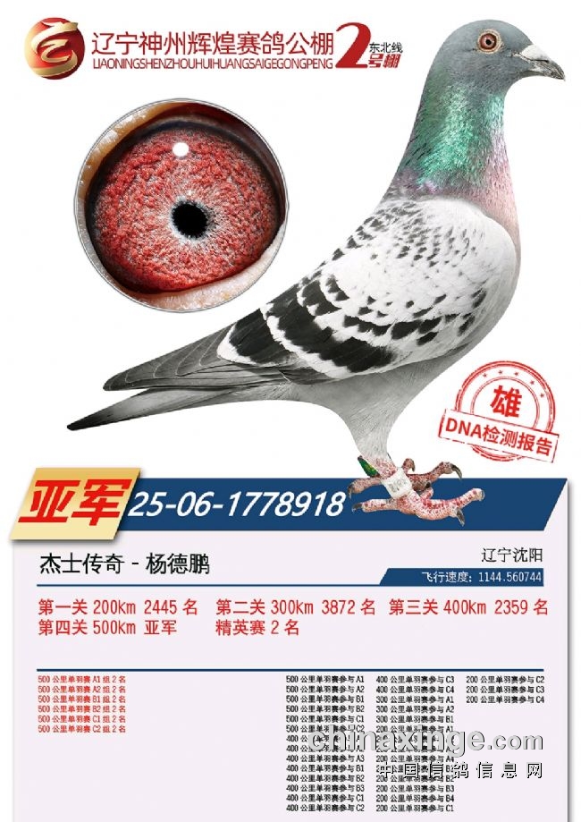 在沈阳鸽界,杰士传奇杨德鹏老师凭借扎实的养鸽功底与亮眼的赛场成绩,在当地颇有盛名。近年他屡创佳绩,斩获2025年神州辉煌2号棚决赛亚军、1号棚决赛96名;2023年辽宁众诚公棚决赛105名、157名;2023年春兴公棚决赛78名、337名、四关鸽王季军等高位奖项。其鸽舍以桑杰士为基础血系,融入佛科克血系,培育出多羽兼具速度与稳定性的优秀赛鸽。今天我们一起听听杨老师分享他在鸽舍管理、饲料配比及引种选鸽等方面的独到见解。