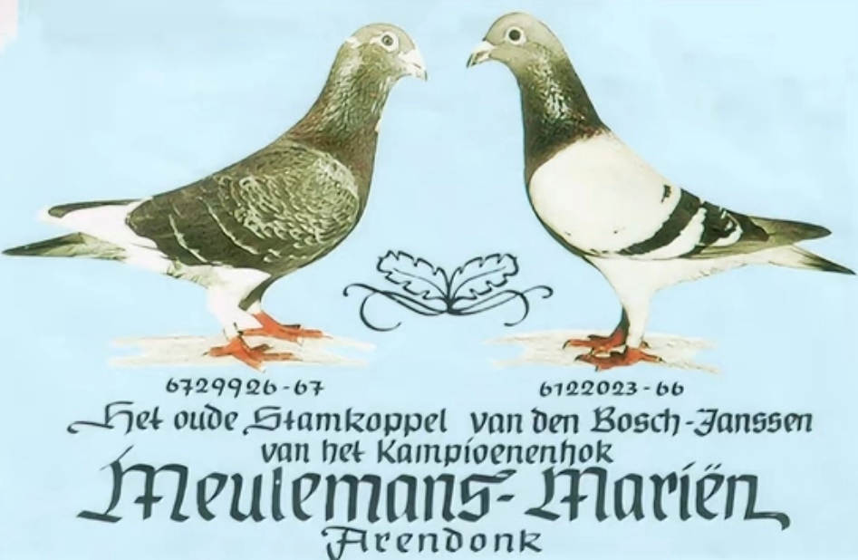 同时,说起配对雄“老凡登布希”的血统渊源,亦有一段往事。1954年9月,穆利门结束一年半的军旅生涯返乡,却发现原有鸽群已严重退化,亟需注入新血。1961年,他与父亲前往邻镇柏拉尔,向著名养鸽家乔斯·凡登布希购入一批种鸽。