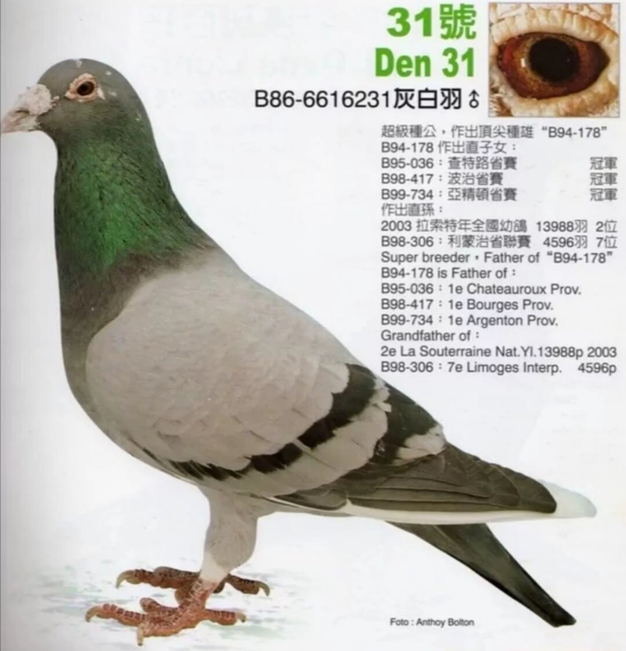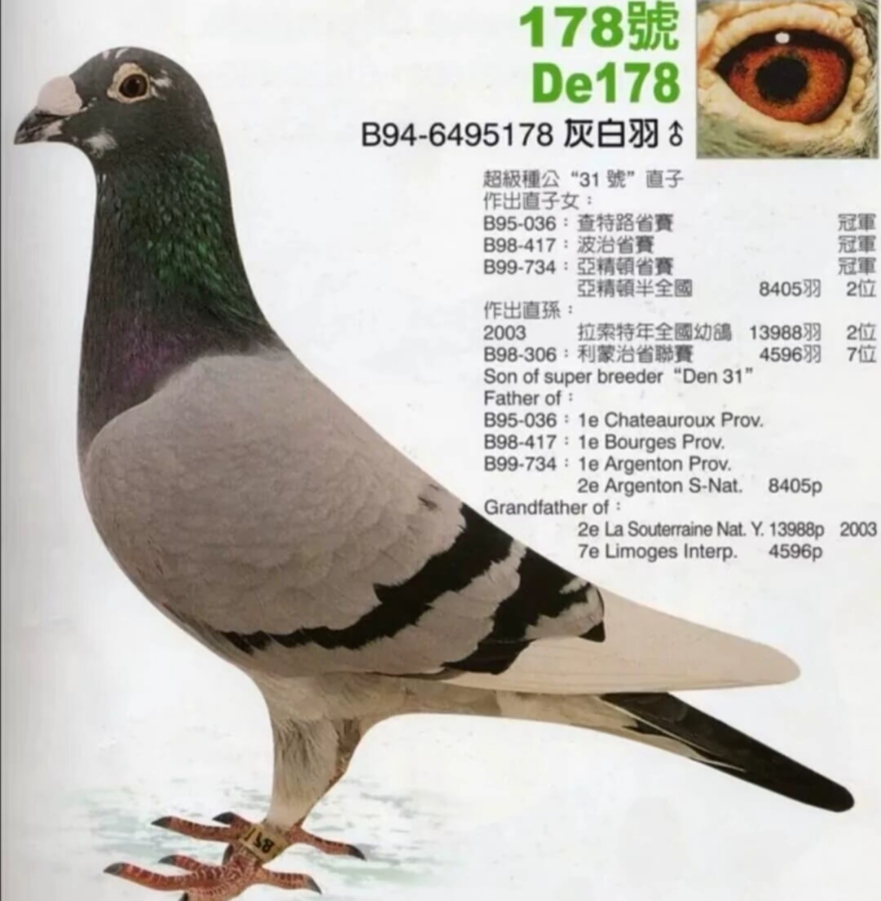 当我们翻开欧洲赛鸽史,会发现许多大师级鸽舍的铸就辉煌的赛场强将,背后都隐现着英格斯血系的身影。而引入这一血系后,仿佛为自己的赛鸽军团注入了最强的速度基因。比如盖比·凡德纳比的爱将“爱情小子”,勇夺查特卢6334羽冠军,其祖父正是英格斯“胖雌”的直子;戈马力的名鸽“琳达”,获波治全国亚军,其外祖母便是英格斯“231号”的直女;胡本家族的“威尔森”,拿下12705羽省赛亚军,其祖父溯源而上,为英格斯的“胖公584号”等等,不胜凡举。