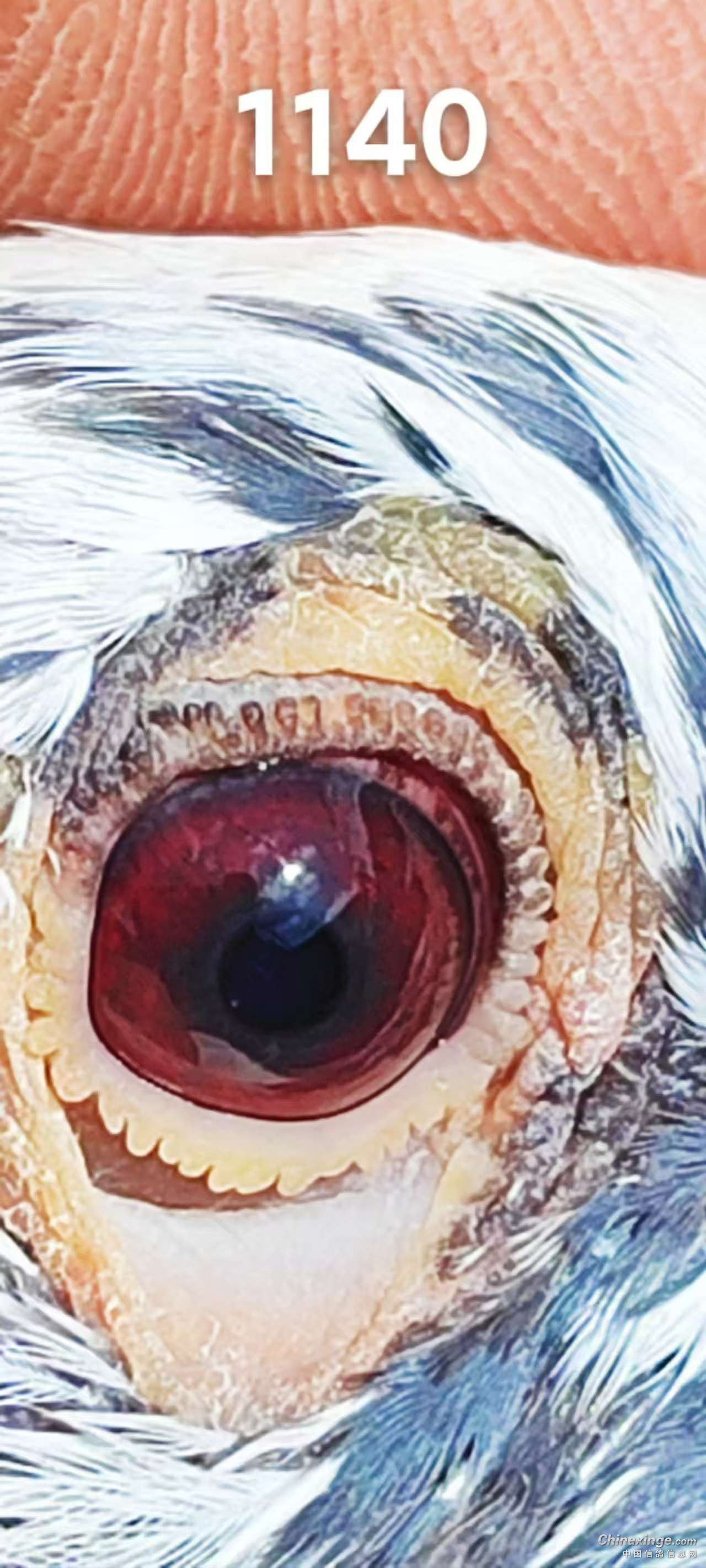 赛后上门验鸽过程中,通过对首羽归巢鸽1140的血统与身体特征分析,深刻印证了恶劣天气下赛鸽归巢的关键特质。该鸽为牛眼,其母鸽是典型的耐力型种鸽,桃花眼色素深厚、眼砂油分厚重,具备极强的抗恶劣天气能力与持久飞行耐力;父鸽为浅色鸡黄眼,兼具良好的定向能力与适应性。