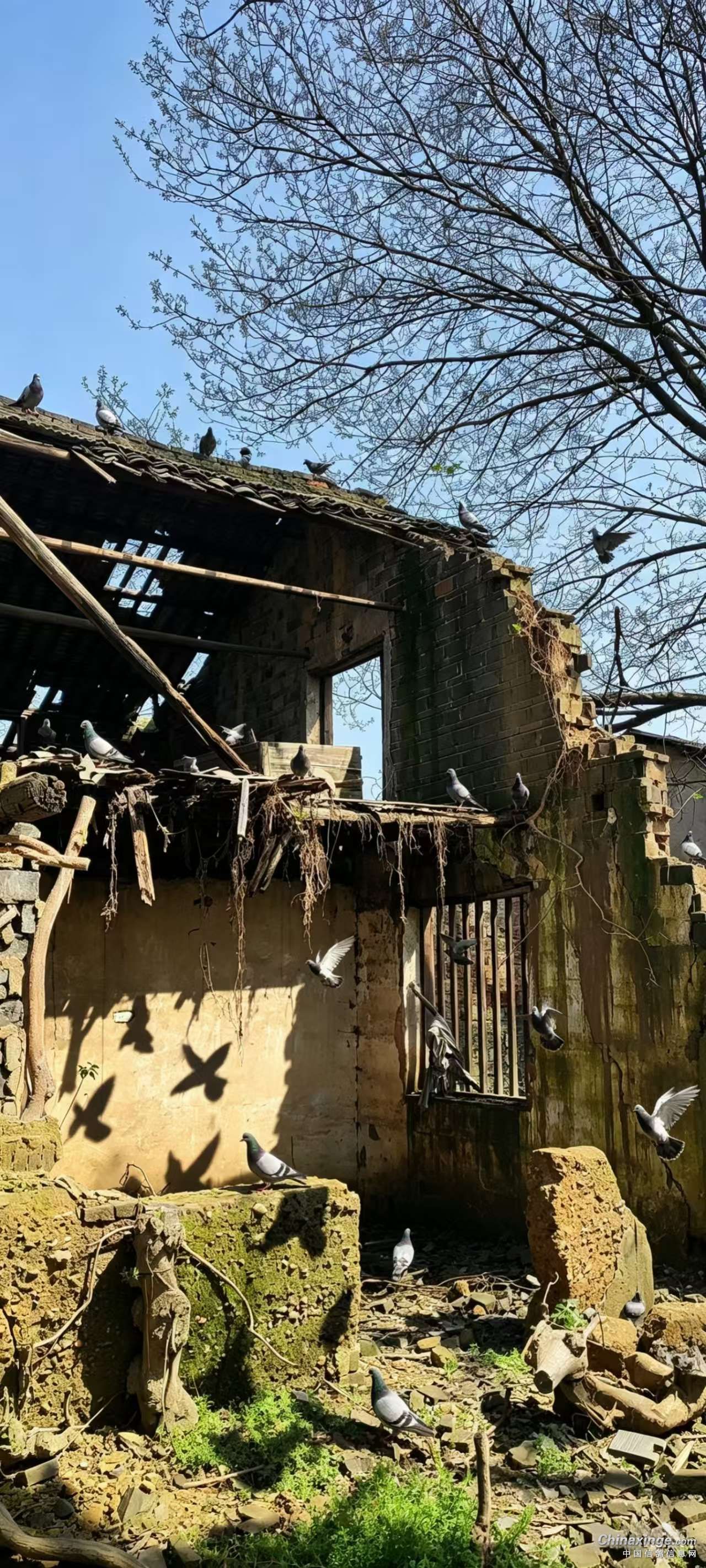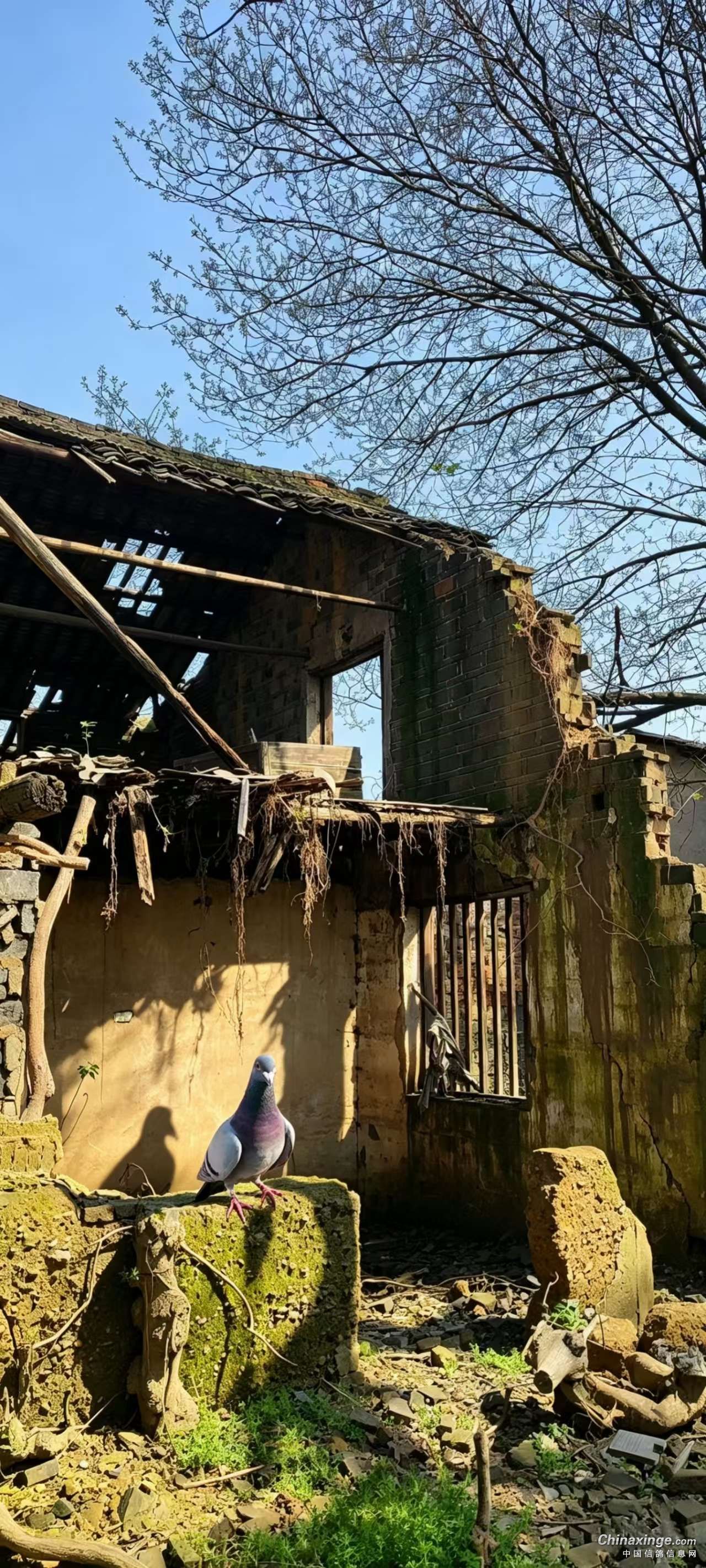 四、当这些信鸽历经艰辛抵达故里时,等待它们的并非曾经熟悉的完整巢舍,而是坍塌不堪、满目疮痍的废墟。按照常规的动物行为逻辑,陌生且破败的环境会让动物产生不安与恐惧,进而选择逃离,但这些归来的信鸽却表现出截然不同的状态。它们在坍塌的原舍旁停留、徘徊,没有丝毫的焦躁与惶恐,反而流露出一种踏实与安稳的神情。即便曾经的家早已面目全非,即便这里没有充足的食物与舒适的栖息空间,它们依旧将此地视为心灵的归宿,这份执着,完美诠释了信鸽恋巢记忆的纯粹与坚定的执着。