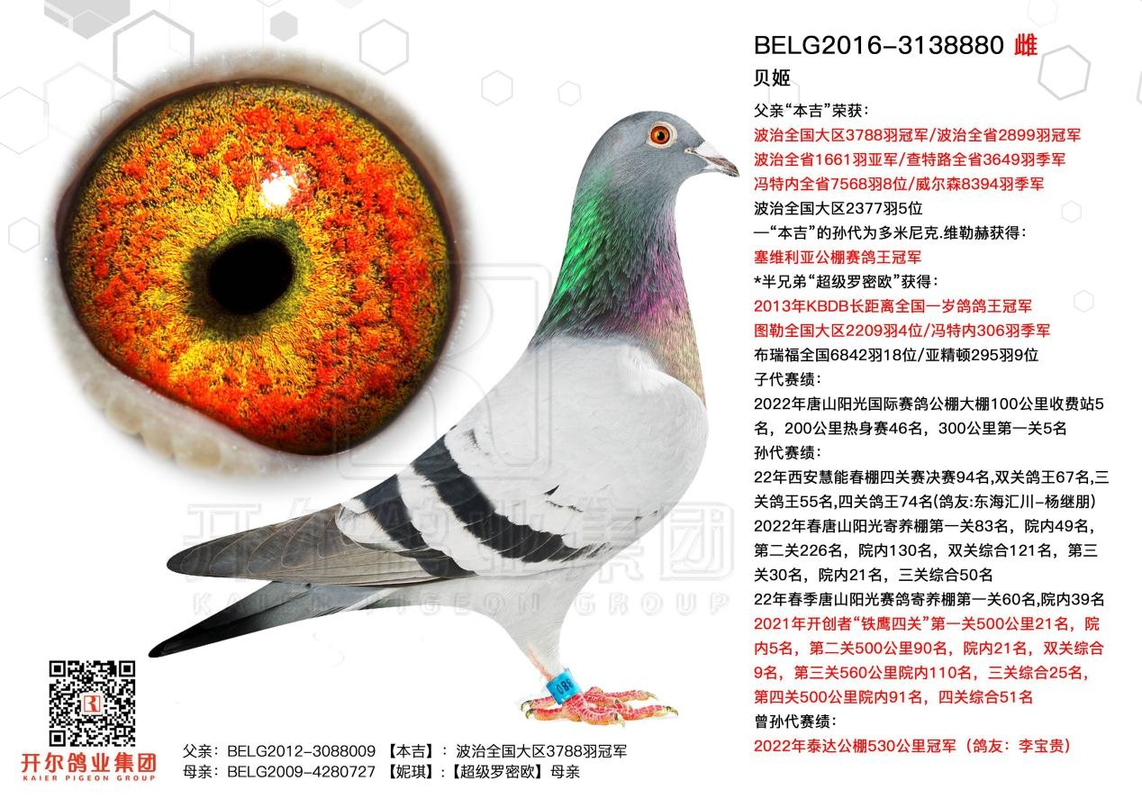 131名父亲为开尔奖鸽,母亲出自开尔育种中心杨欧瓦克系公棚奖鸽。