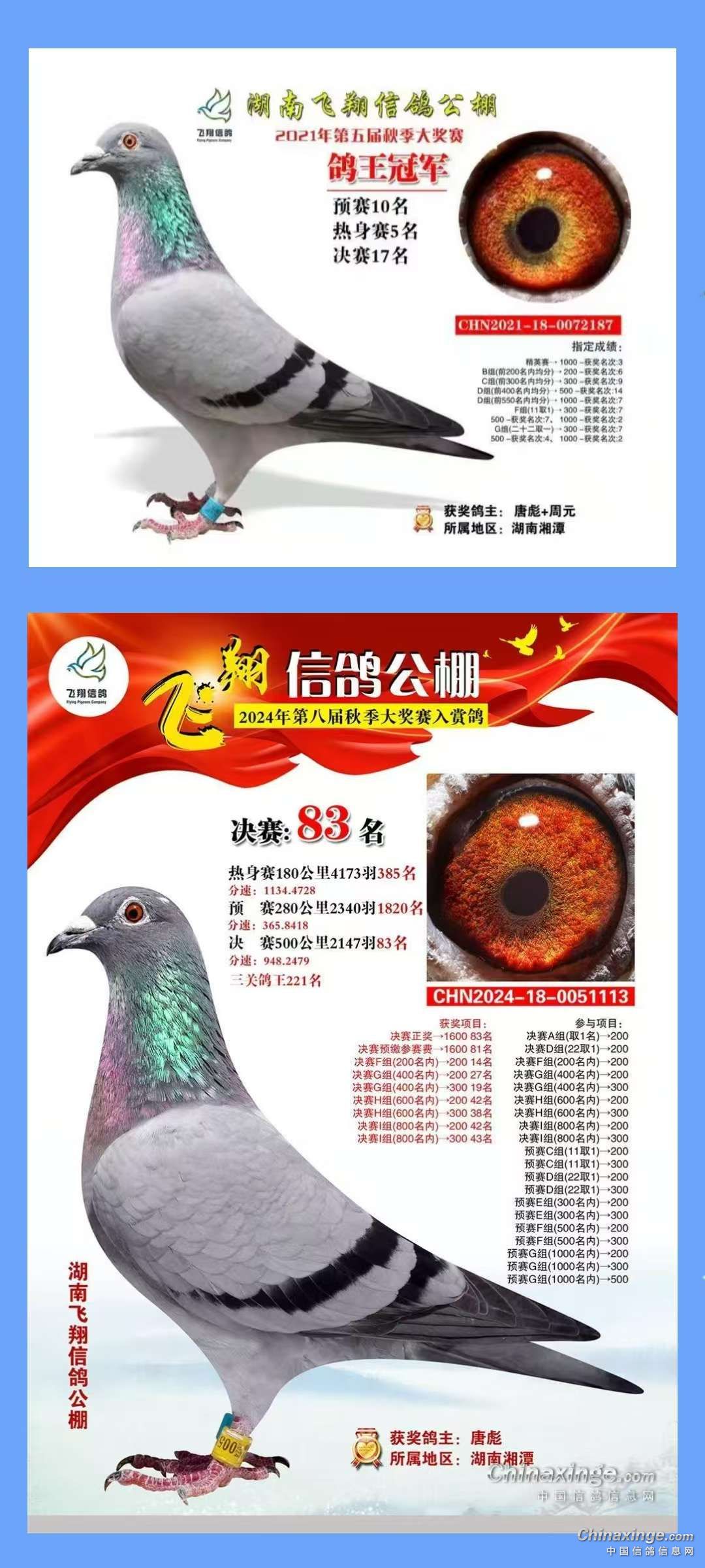 此次配对共繁育出四羽子代赛鸽,第一窝蛋赠予衡阳鸽友,第二窝幼鸽经精心培育后,参加湖南公飞翔公棚赛事,凭借出色表现斩获佳绩,自此闻名湖南信鸽赛事圈。后续赛事中,该血脉赛鸽持续展现强劲实力,2021年勇夺湖南飞翔公棚第五届秋季大赛鸽王称号,2024年再次在飞翔公棚第八届秋季大赛中获得第83名的优异成绩,充分验证了此次配对育种的科学性与可行性。