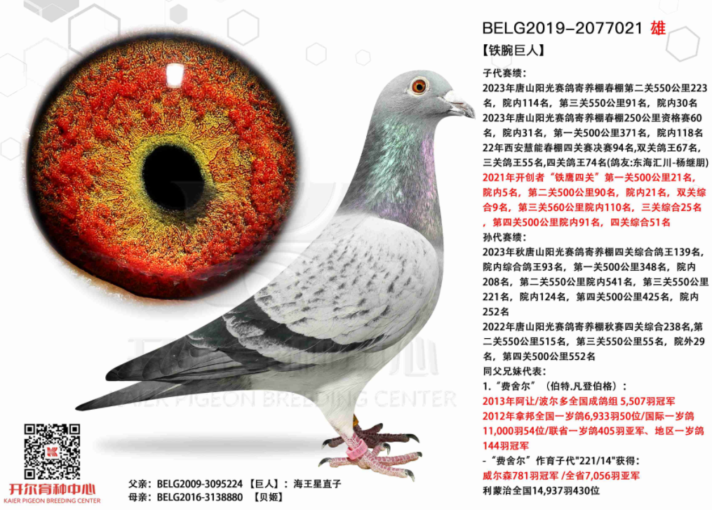 大团体殿军成员248,母亲是盖比铁腕巨人直子与杨欧瓦克经典配对阿恩904直女的结合,铁腕巨人正是开尔盖比五虎上将之一巨人直子,巨人后代曾获24年天南铜都小棚三关鸽王殿军,精英赛7名。