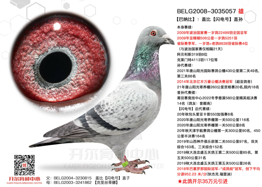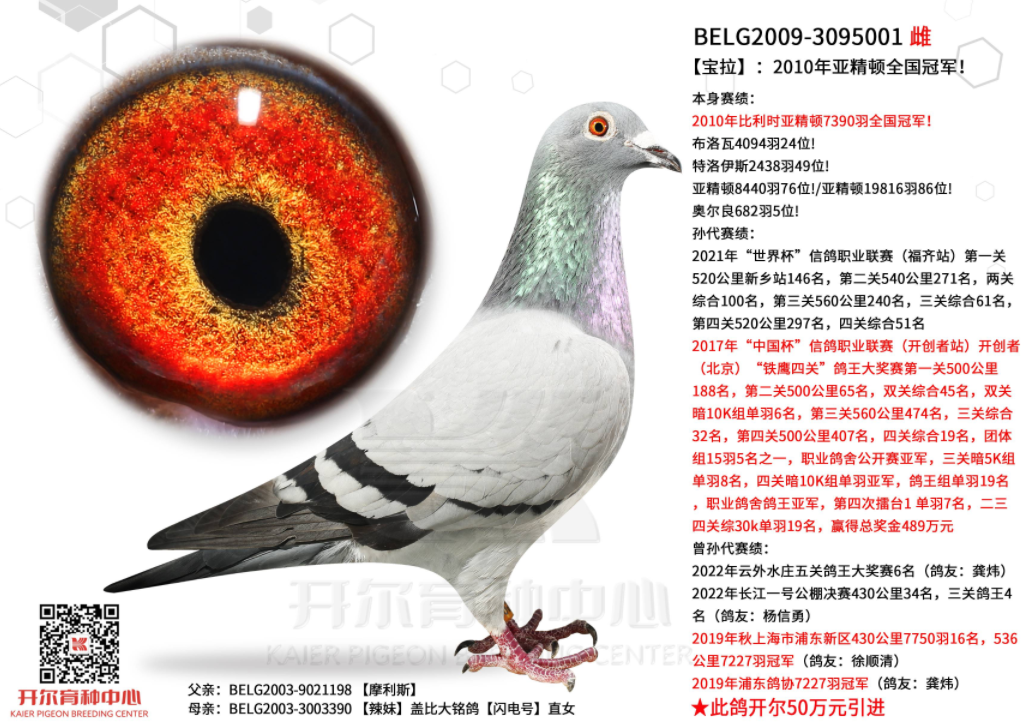 大团体殿军成员228,斩获决赛23名,父亲是盖比闪电号的多重近亲回血,出自闪电号亲兄弟直子费雷诺与闪电将军直女。母亲汇聚杨欧瓦克两大殿堂级种雄,新484与千万国王的基因,亲兄妹还获26年江苏爱翔300公里季军。