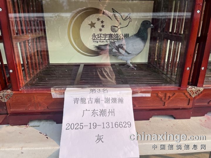 16:08,季军归巢,是鸽友青龍古廟-謝爍瀚的2025-19-1316629灰,飞行分速763.49817米/分。
