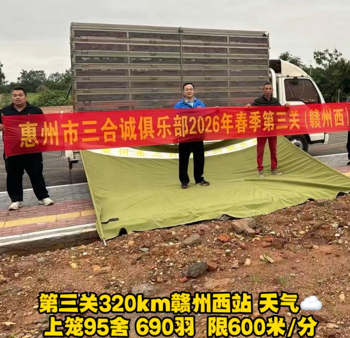 4月15日清晨7点30分,惠州三合诚俱乐部春赛第三关在赣州西站开笼放飞。比赛一共集鸽95舍690羽,参考空距320公里。本关有效分速限制在600米/分,期待小将们飞夺佳绩!