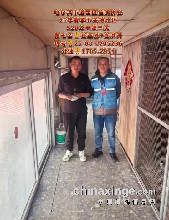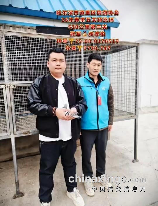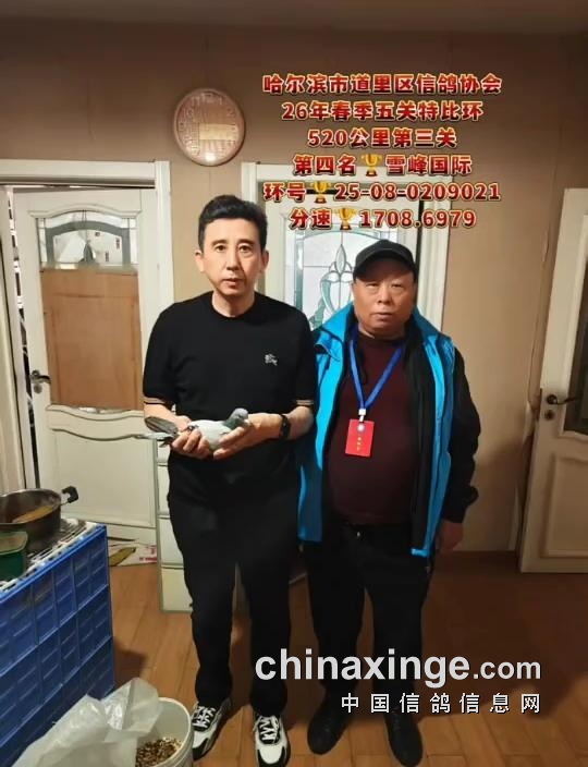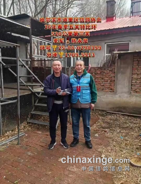 10时21分58秒,鸽友陈永泉的一羽25-08-0290399雨白条打钟归来,空距500.854公里,分速1709.5913米/分,斩获季军。