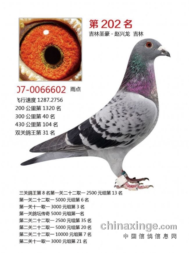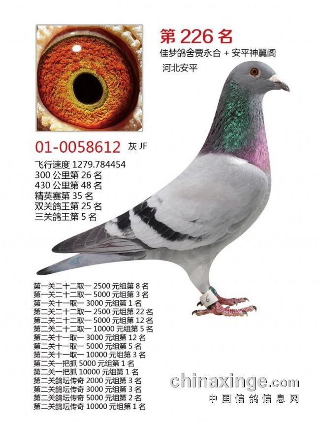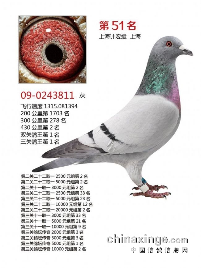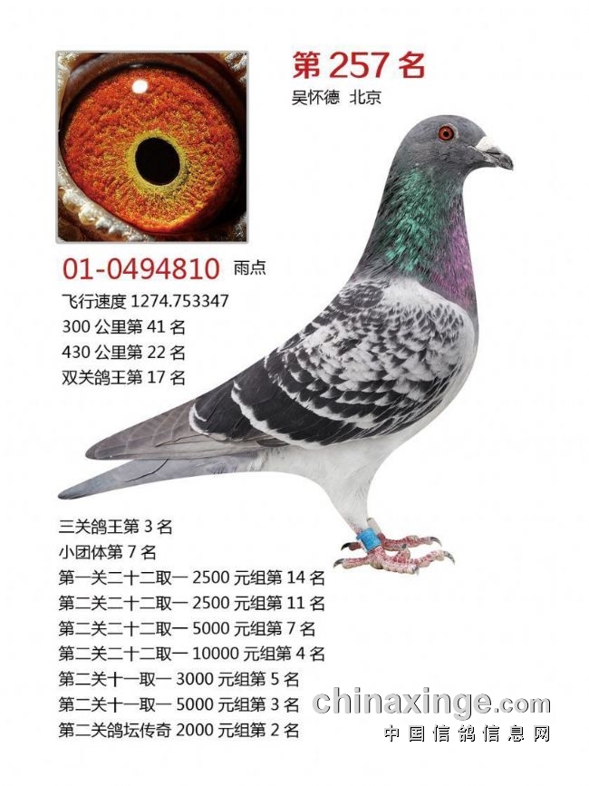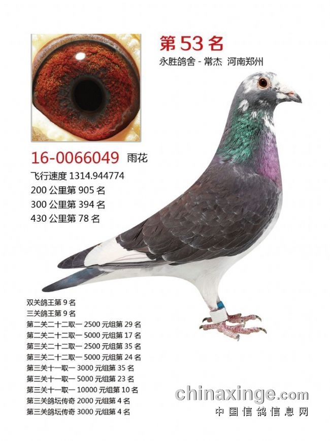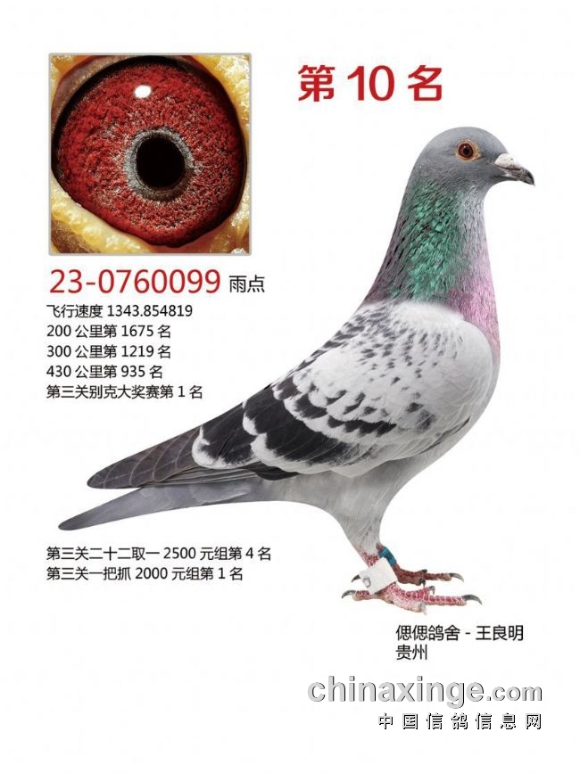 决赛前10及三关鸽王前10获奖鸽欣赏:
