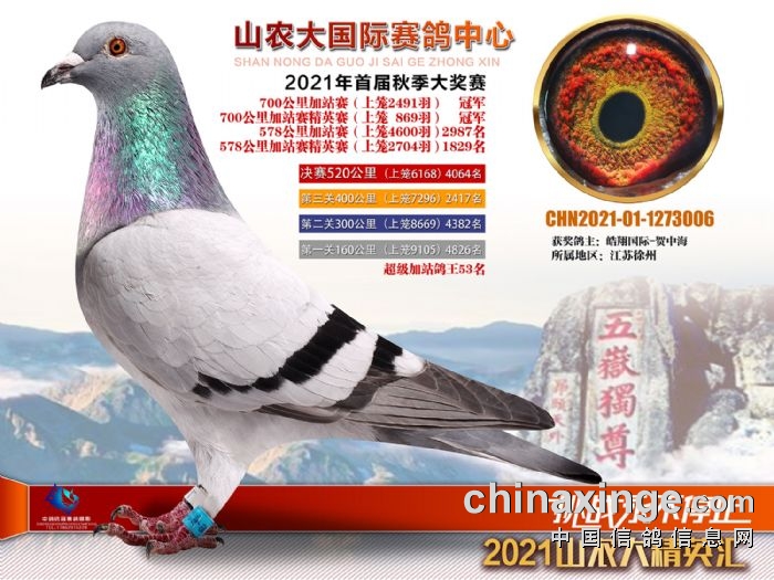1.2021年山农大秋棚举行了560公里、700公里中长距离加战赛,最终鸽主皓翔国际-贺中海的一羽2021011273006赛鸽,凭借1001.27米/分的分速,勇夺冠军。前几关短程赛中,这羽赛鸽并不抢眼,但在中长距离赛事中突然发力,不得不说,有些赛鸽,确实是中长距离的一把好手。