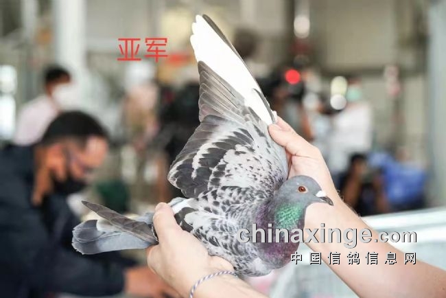 亚军是英国的彼德·欧伯贺斯特作出,环号是GB21-Z57118,是一只雨点儿单侧白条的雌鸽。