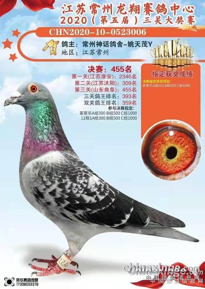 通过这几年的积累,姚弟的鸽子现在种鸽种群质量品质极高,在现今公棚比赛数量大、竞争激烈的情况下在各个公棚获得不少好成绩。平时姚弟因为工作的原因鸽子仅仅是他丢不下的爱好,因为爱鸽子一路执着,也经历了从盲目无头绪的到现在有了自己的种鸽队伍,经历了引种、比赛、育种的历程,坚持到如今,也因为性格上执着和不懈努力使他在以詹森荷比对抗这路鸽子打底,一路披荆斩棘经过近5、6年的作育,代代飞出了好成绩,取得了公棚亚军、155、149、161、230名等诸多成绩,也印证了这路鸽子强势遗传的个性,请大家欣赏部分获奖鸽照片,进一步了解其一脉相承的超级遗传基因和明显的家族特性来认知这路鸽子。