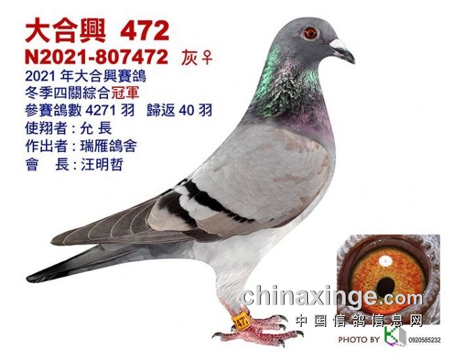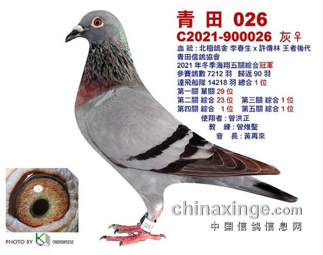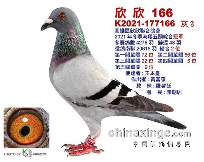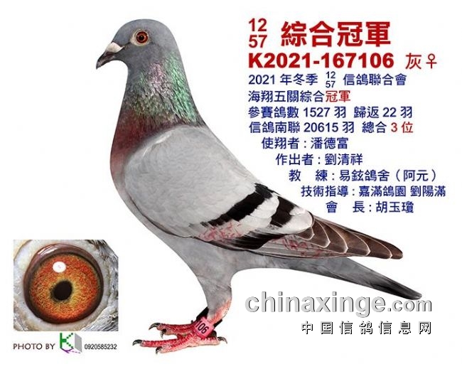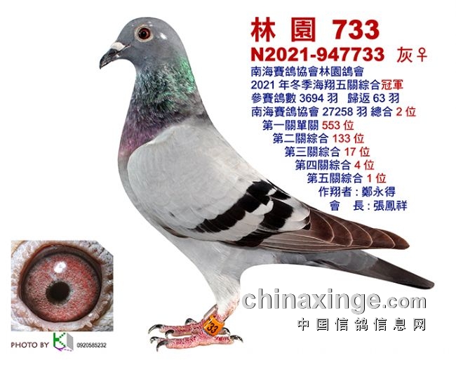 2021年中国台湾南海冬季五关鸽王赛共计22家鸽会,45696羽赛鸽参与竞赛,经过1个多月、2次资格赛和5关正关赛之后,仅有14家鸽会722羽赛鸽能够顺利地飞完全程,归巢率为1.58%,相当的困难。
