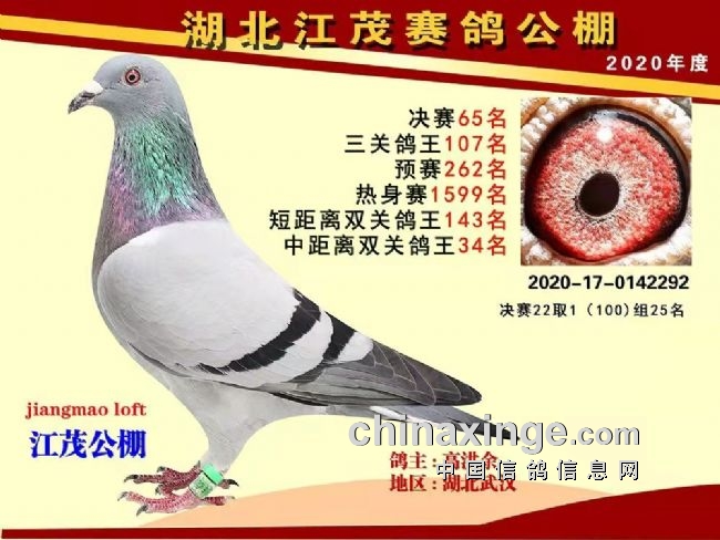 雌为2020年湖南江茂公棚 决赛65名 鸽王34名
