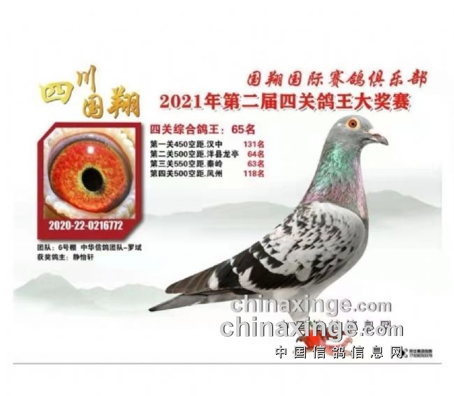 雄为2020年四川国翔寄养棚四关鸽王赛入赏鸽 65名