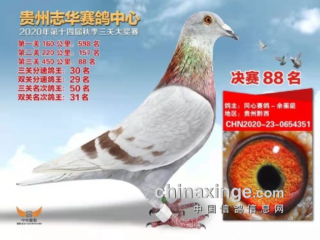 雄为2020年贵州志华公棚 决赛88名 鸽王29名 子代(7名、9名)