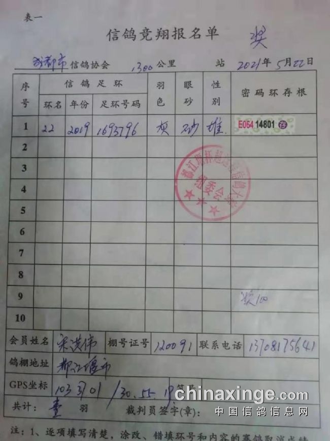 宋洪伟会员以千公里空距季军,再上疆场勇夺超远程季军的这段传奇,再次说明好鸽子,就是要赛场见,就是有不断挑战自我,直至取得更大成功!