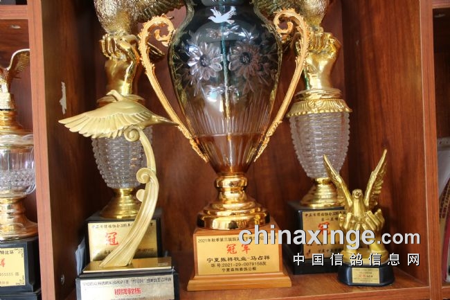 为此,笔者专访了宁夏养鸽名家、2021秋季宁夏森翔公棚冠军鸽主马占祥。马占祥家住吴忠市利通区,种鸽饲养在农村老家,客厅中的奖杯熠熠生辉、琳琅满目,令人目不暇接。鸽舍建在院中和房顶,共有14 间、养种鸽 260羽。品种有:悍将、波西瓦盖比、贝壳詹森、电脑、小飞戈、凡登布克。 在采访中了解到,马占祥打公棚,输输赢赢二十多年,他总结出一句话,即:输别怕,别怕输。