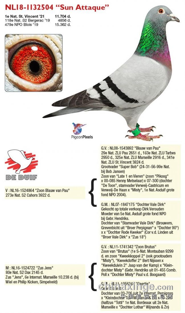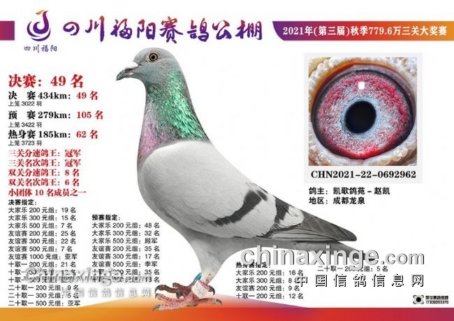答案揭晓,果然高手在民间,不少的鸽友都猜出那图一就是超远程冠军鸽,这羽赛鸽是来自于2021年四川超远程1300公里的,历时5天11小时11分胜利归巢。希望本文能帮助到一些鸽友,加深对鸽眼的认知,下次看眼识鸽再见!