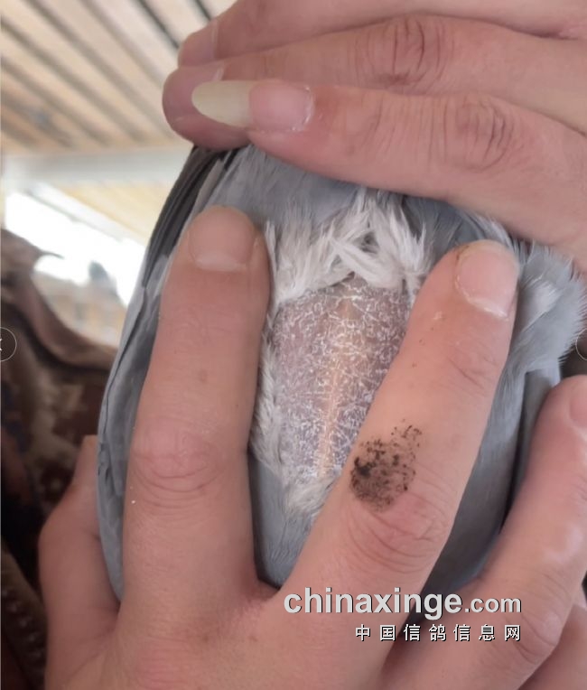 现阶段,每日都在进行160分钟以上的强飞训练。强飞之前,鸽体肌肉已没过龙骨、羽毛柔顺,在强飞喂食结束后,随机抓一只鸽子就会发现,这时候的肌肉较飞之前下去了一点,肌肉变软与龙骨略微持平,活力依旧良好,而且仔细发现,膀条上已经长油、有明显的飞行痕迹,肌肉上的虎皮开始向下爆。
