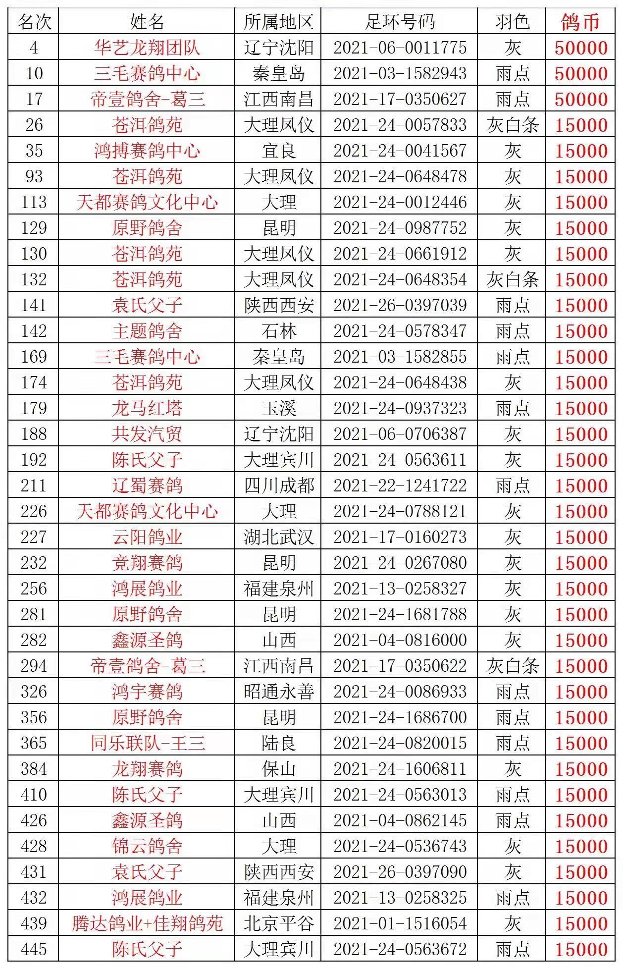 笔者在查阅决赛获奖赛鸽名单的过程中,发现大量未实名的参赛名和未经中国信鸽协会审批的境外足环。而根据各级信鸽协会和该公棚本届竞赛规程的第一章比赛办法的第2条中“实名制参赛,鸽主领奖时必须提供有效身份证明。集鸽代理人收鸽时必须登记鸽主真实姓名”和“参赛鸽必须佩戴一枚中国信鸽协会认可的2021年统一足环”的有关规定,上述赛鸽获奖的有效性值得思考。