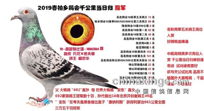 期待今年的比赛,大家都取得优异的成绩。以下是最近几年的高位获奖鸽欣赏: