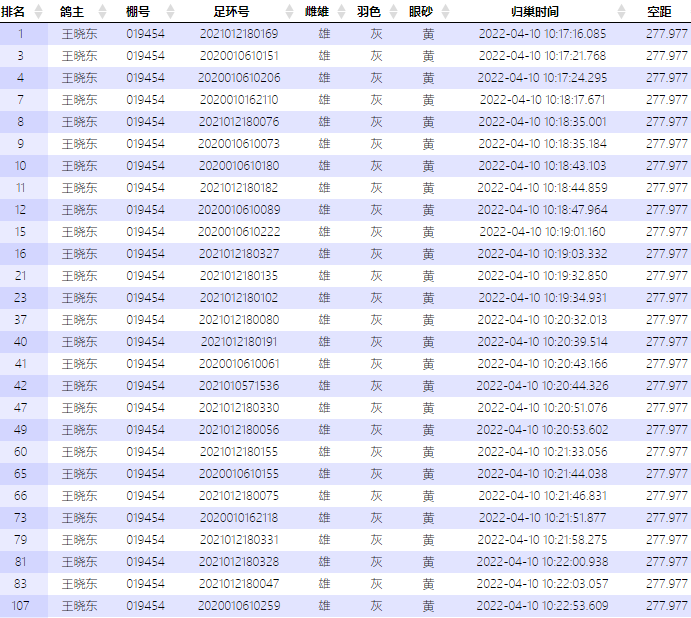2021年11月18日,丰台450公里包揽前4名,前100名入赏10多羽赛鸽。