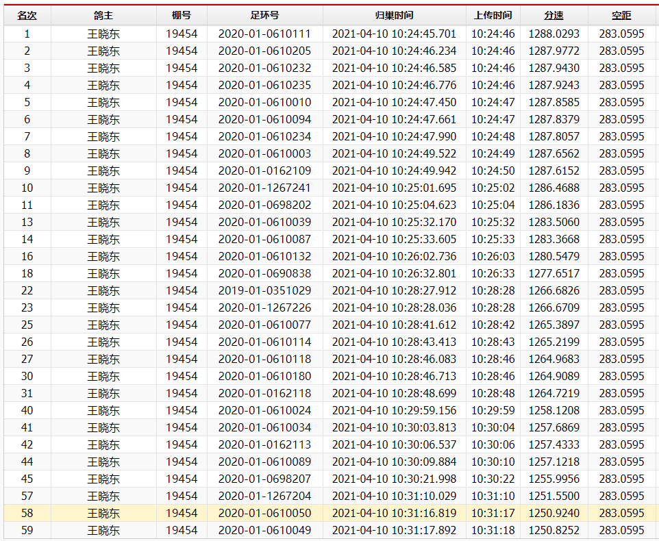 刚刚过去的周末(4月10日),北京鸿运鸽舍王晓东包揽了北京丰台鸽会300公里冠军、季军、殿军、7-10等高位,一小时内报进71羽,总计入赏46羽,夺下团体冠军,成为近日鸽界的焦点,引起了众多鸽友热议。