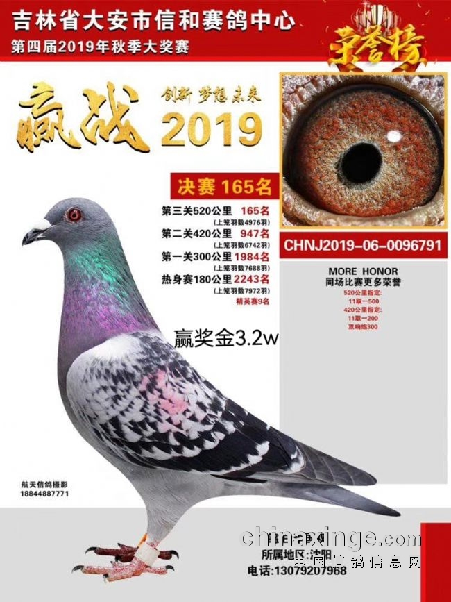 2019年飞戈668又配了另外一只雄鸽,出一对鸽子,只送一只去公棚比赛,获得决赛165名、精英赛九名及两项指定鸽优胜,共获奖金3.2w。