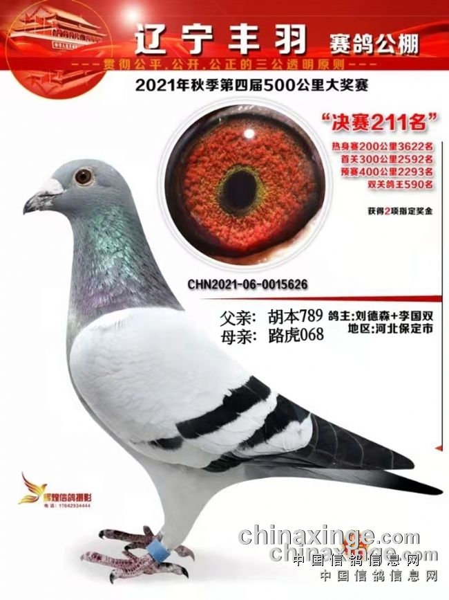 2021年,路虎068雌交配胡本789灰黄雄,作出:胡本626灰黄雄,获得:公棚决赛211名。