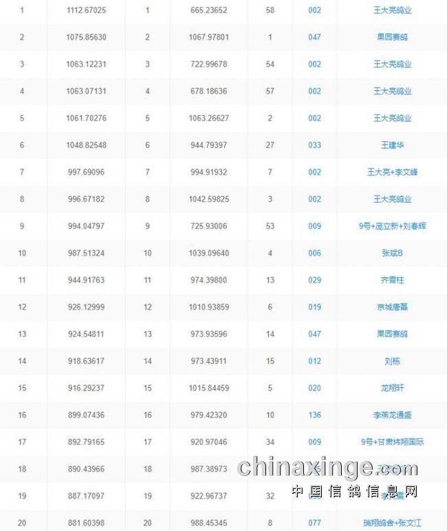 第三关季军:王大亮鸽业,环号91375,分速1063.12231米/分,此鸽双关综合排名第二位,第一关淇县站249名。