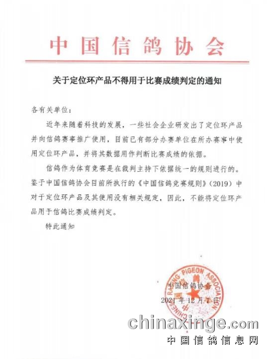 4月23日,重庆宏艺翔(春棚)发布了第九届取消决赛佩戴GPS定位足环的公告,宣布根据文件中的指导精神,应广大鸽友强烈要求取消定位环建议,再结合我春秋棚佩戴定位环后归巢率的参考,公棚决定取消定位环。详细公告>>