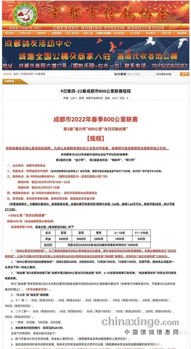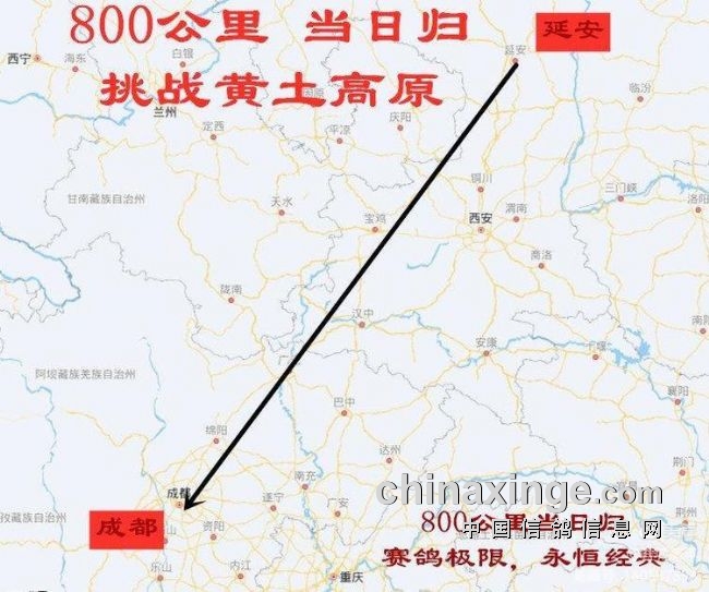 800空距,国际公认的长距离当日归经典,无顺风状态下赛鸽当天飞行的极限,成都北线出川,直抵黄土高原,必翻秦岭巴山,使得800赛场更具挑战!