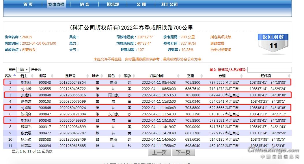 再次恭喜刘旭科本次700公里竞翔夺得冠军、季军。期待今年千公里再上新台阶,更上一层楼。