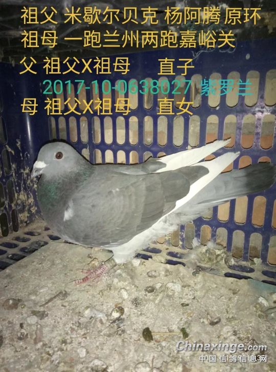 跑偏了,还是回到鸽友们关心的鸽子上吧。笔者了解到,本次季军为薛启鹤支援的杨阿腾,其父亲一次兰州——扬州,两次嘉峪关——扬州,直子。母亲为一次兰州——扬州,两次嘉峪关——扬州,直女。祖父为米歇尔贝克杨阿腾原环,祖母一跑兰州,两跑嘉峪关。其它名次鸽也多为薛启鹤支援后代,比如薛启鹤原舍八年原配种鸽,为华国伟哈密×浪里白条血系。在参观了种鸽棚和赛鸽棚之后,不乏后起之秀,有徐世进吴淞、耿昌盛三跑兰州还血直子、高红军千公里高位等等。