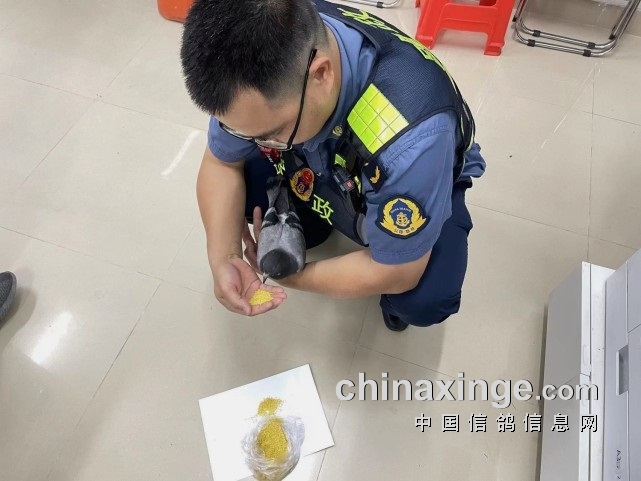 唐土合看见鸽子翅膀受伤,脚上配有脚环,猜测应该是人工驯养的鸽子,张望四周没有发现运输禽畜的车辆,便先带回去。回到路政三中队办公室后,熟悉鸽子的队员拿来了粮食喂,并通过网络查询编号信息,联系到了它的主人郑先生。
