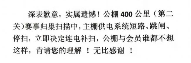 不过,公棚在的二关赛事也并不顺利,5月8日晚8点半,公棚发布最新公告,宣布因为主棚供电系统短路、跳闸、停扫,出现了问题。