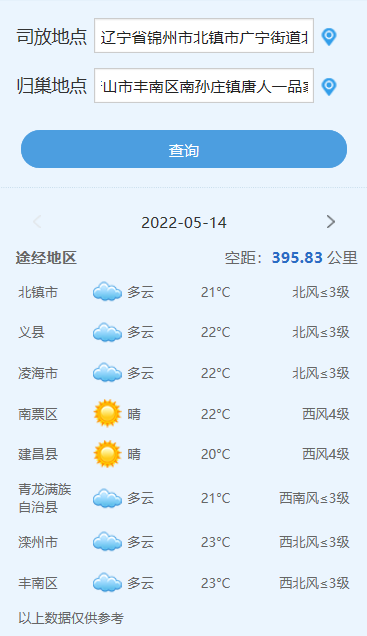 第一斧:北镇市——义县——凌海市。这一路比较轻松,虽然是多云天气,但小于三级的北风会送小将们一程。赛鸽们在精力最充沛的时候,乘着来自广袤黑土地上的北风,清凉舒爽,颇有“我欲乘风归去”的惬意之感。
