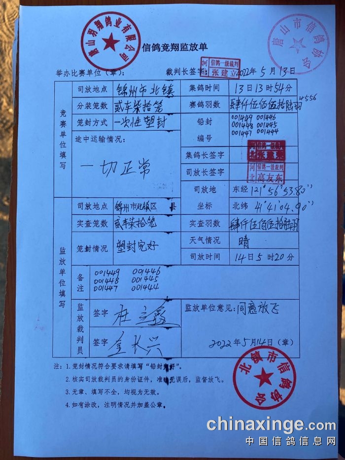 第二关集鸽完毕之后,开尔爱心公棚(春棚)5月14日清晨05:20开笼放飞,4556羽赛鸽从辽宁锦州北镇市启程,踏上一场400公里的征途。