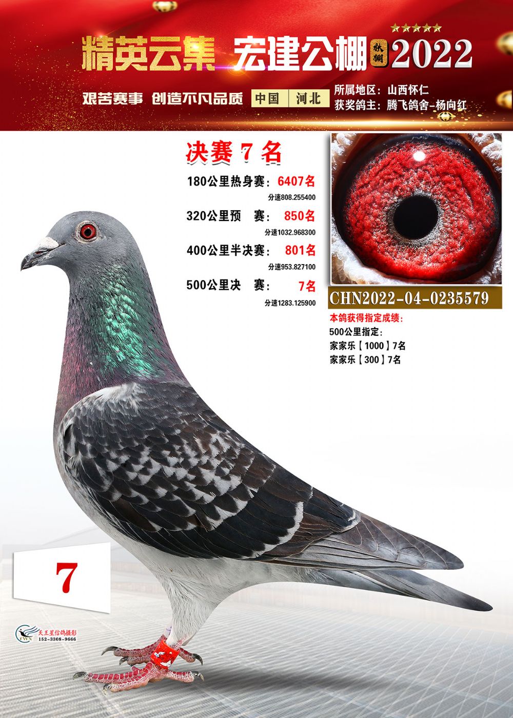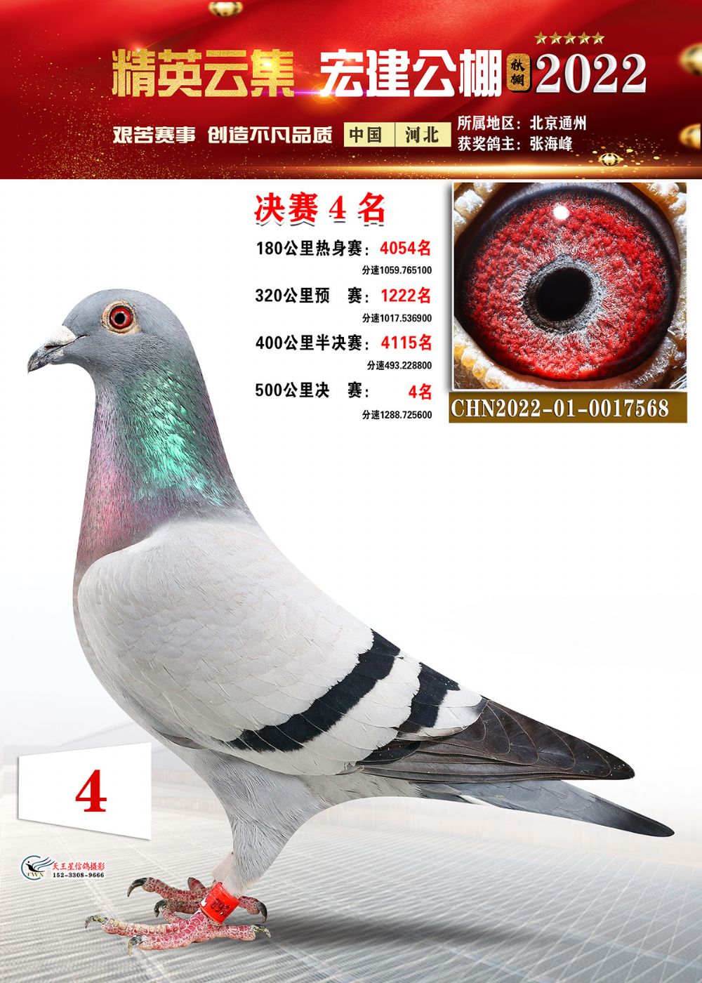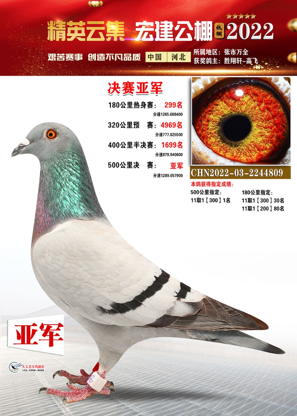 河北宏建公棚2022秋预赛半决赛前三名共4羽