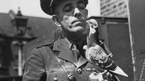 送鸽参军由来已久,法国富翁西翁曾送大批赛鸽入伍,并因此获得比利时国王授予的武士荣誉奖章。在一战和二战期间,都曾有6万多羽信鸽服役,充当通讯兵和侦察兵,立下汗马功劳。