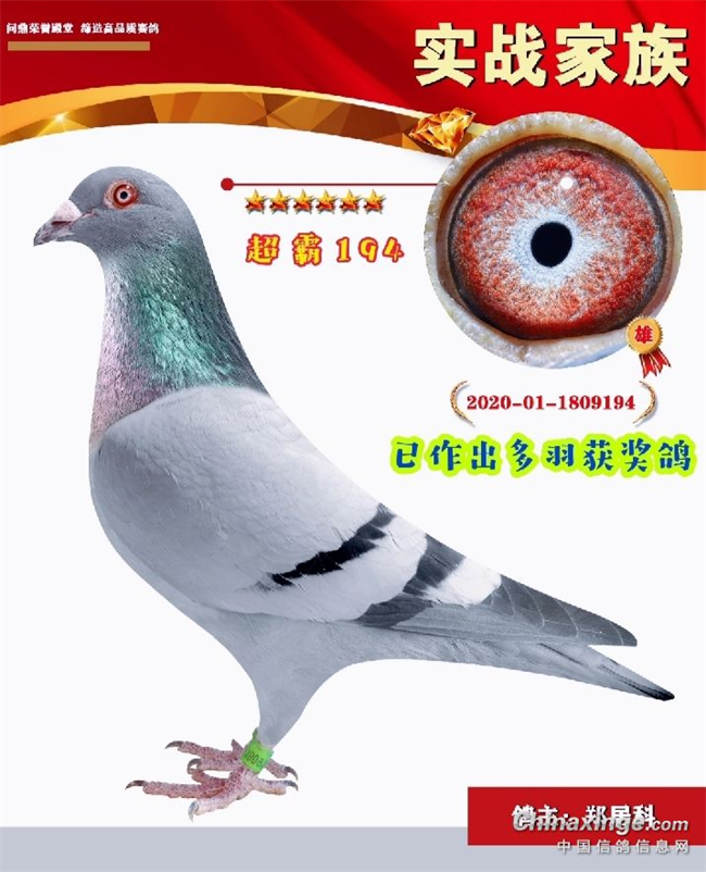 配对中的瓦灰砂眼雄鸽是2020年的超霸194(凡龙系),属于外甥配阿姨近亲作出。之前它配公棚三关鸽王第七名,曾作出了一些地方赛和公棚赛的获奖鸽,但总体感觉;若飞多次500km赛距的四关赛稳定性不佳,另在上了500km赛距的名次不算特优秀。