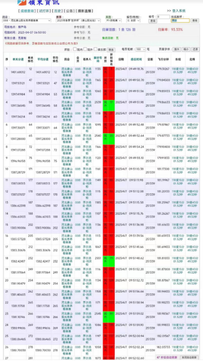 首先在天津宇航春棚,出自开尔杨欧瓦克纯血系的0887201获得天津宇航春棚2023年首届春季三关竞赛第一关13502羽第五名!