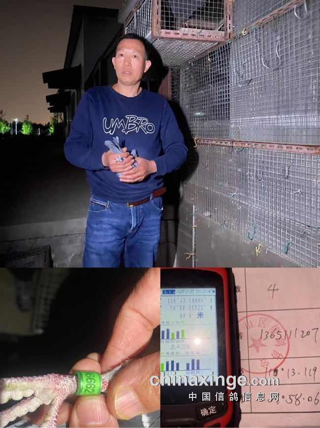 他的另一羽环号2022-01-0591325的赛鸽拿下殿军,分速1365.059米/分,空距554公里。同时,他也凭借入围14羽的好成绩,一举拿下团体冠军。