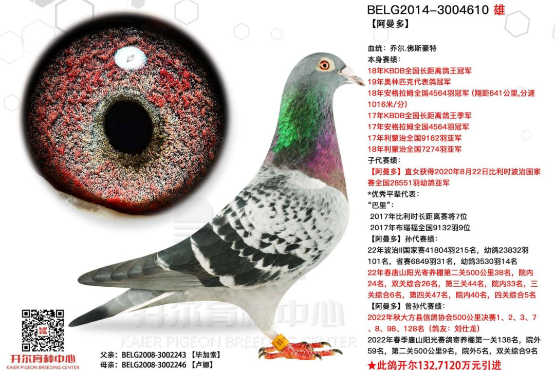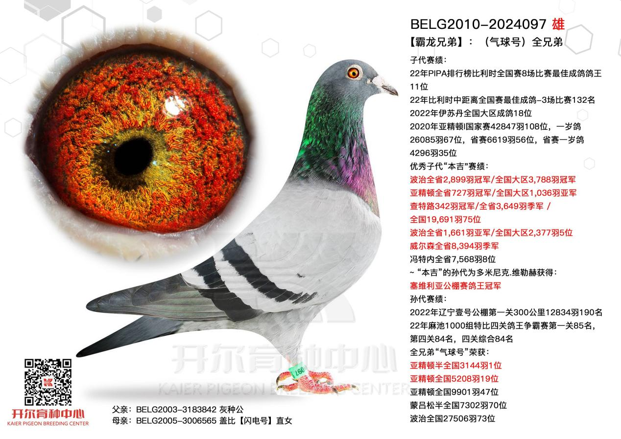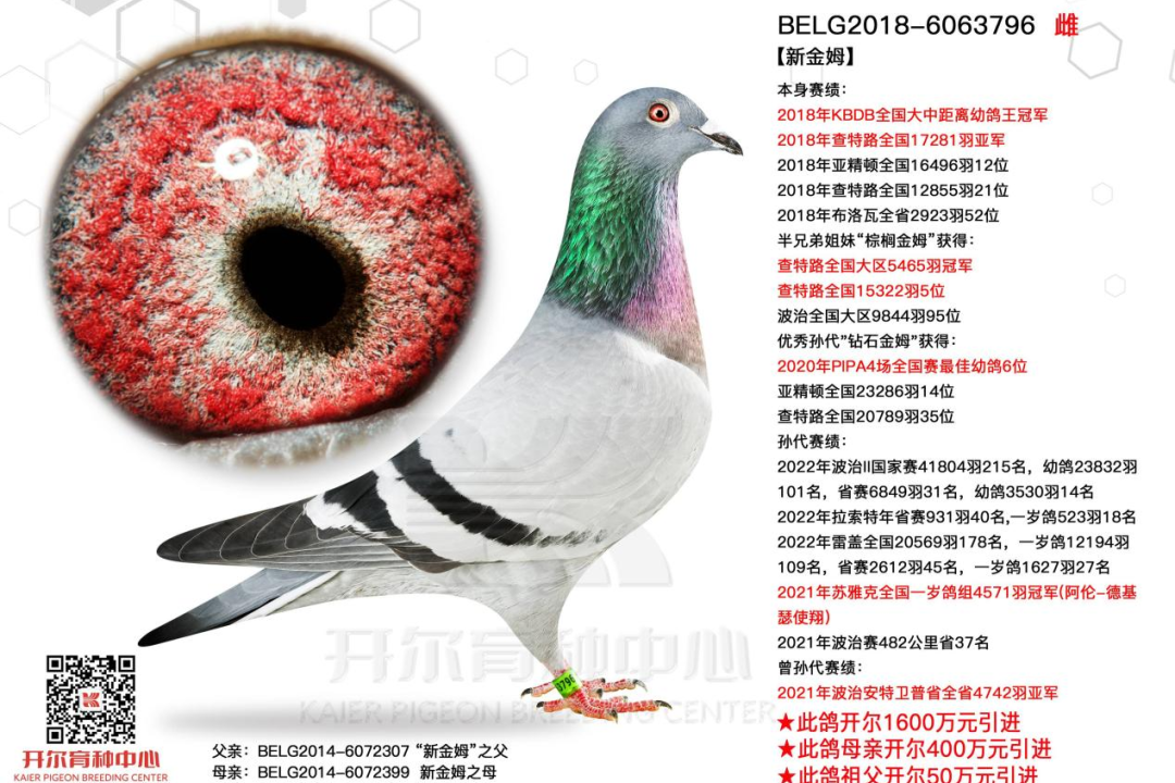 它的母亲则是开尔重量级鸽王无敌白腹号,本身获得2021年KBDB全国大中距离一岁鸽王冠军(最佳4场比赛,系数为0.367),2021年KBDB全国排行榜四场全国赛最佳一岁鸽王冠军,2021年KBDB全国排行榜五场全国赛最佳一岁鸽王冠军(系数为0.9811),2021年KBDB全国排行榜六场全国赛最佳一岁鸽王冠军!