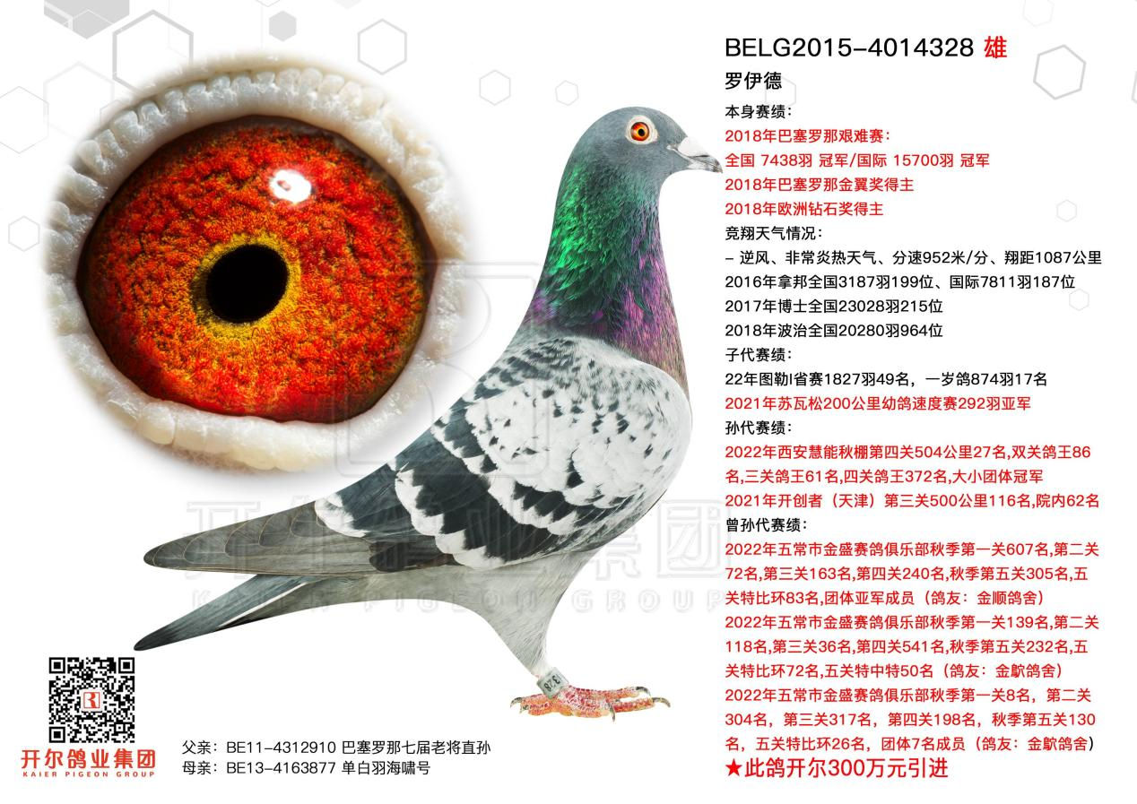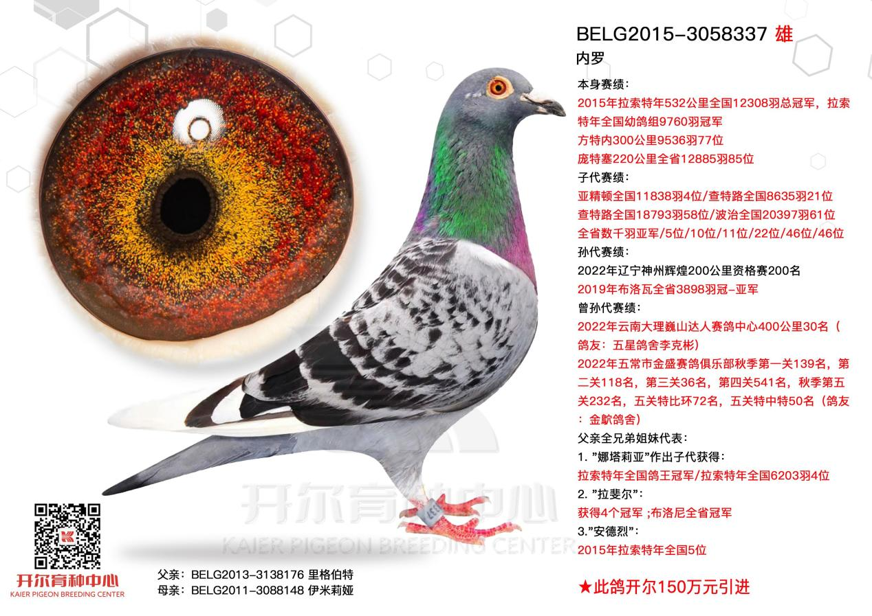 它的父亲是由拥有“顶级雌”称号的伊米莉娅×里格伯特作育的后代内罗。其自身更是获得2015年拉索特年532公里全国12308羽总冠军,拉索特年全国幼鸽组9760羽冠军,方特内300公里9536羽77位,庞特塞220公里全省12885羽85位的好成绩!